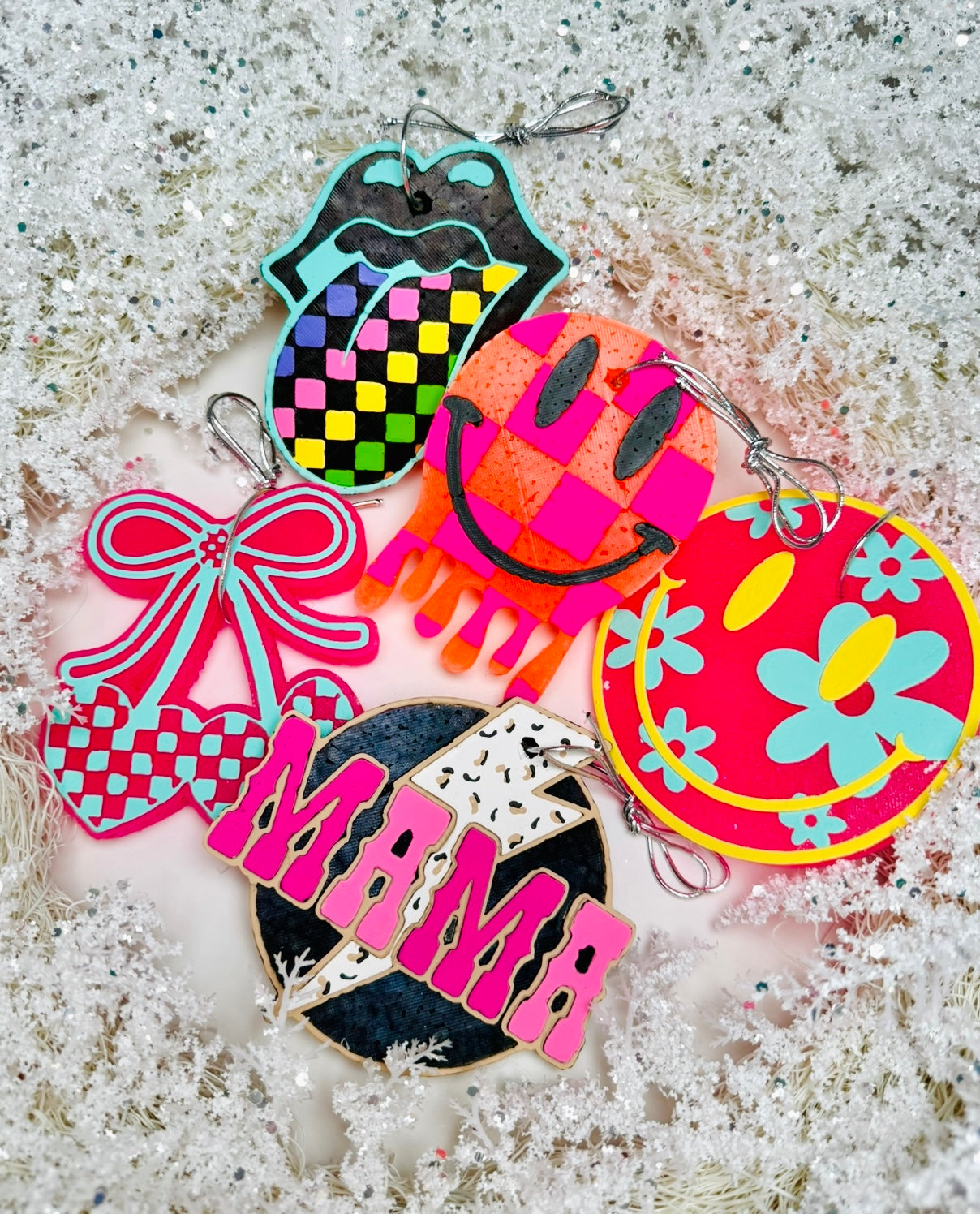 Bubble bead, stretchy keychain wristlet with lobster claw clasp and tassel.