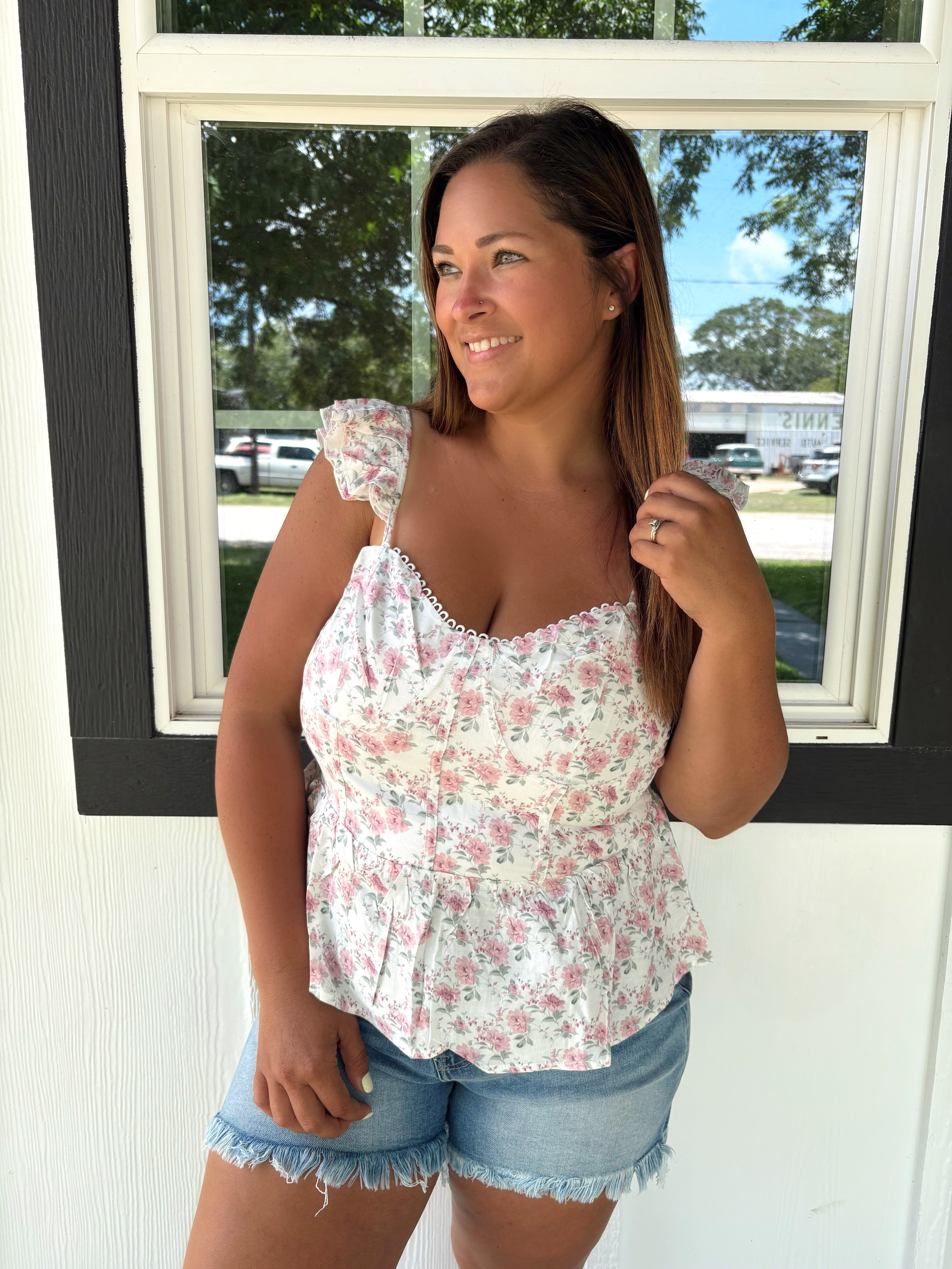Fabric: 100%Viscose Fit: True to Size Details: v neck, intricate floral embroidery, ruffled accents, adjustable straps MODEL SPECS: Taylor- Size Small...