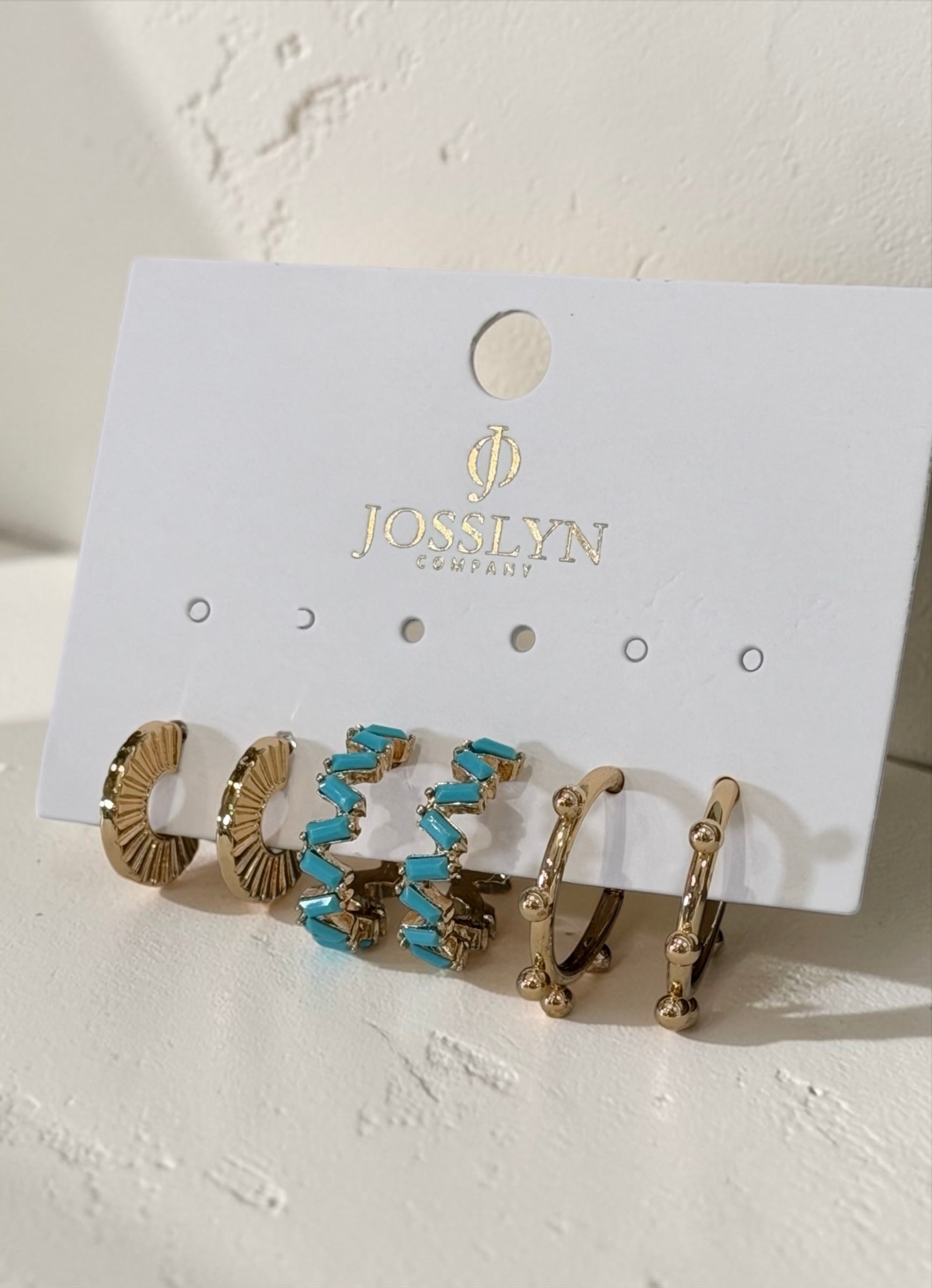 Stones and hoops trio earring set