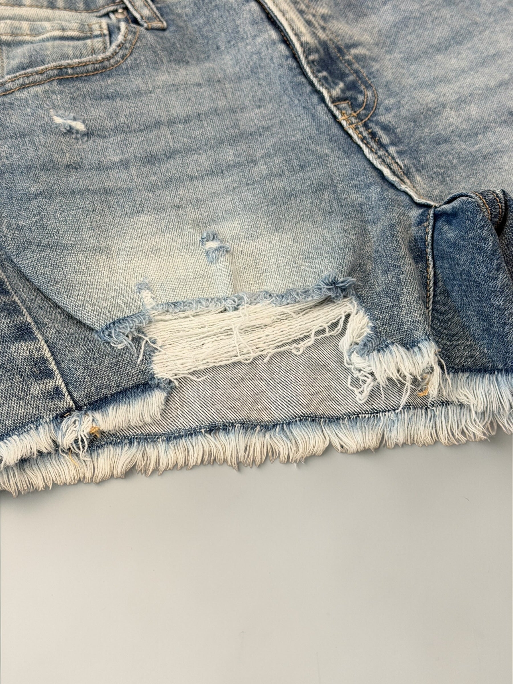 Details: RAW FRAYED HEM DENIM SHORTS -DISTRESSED