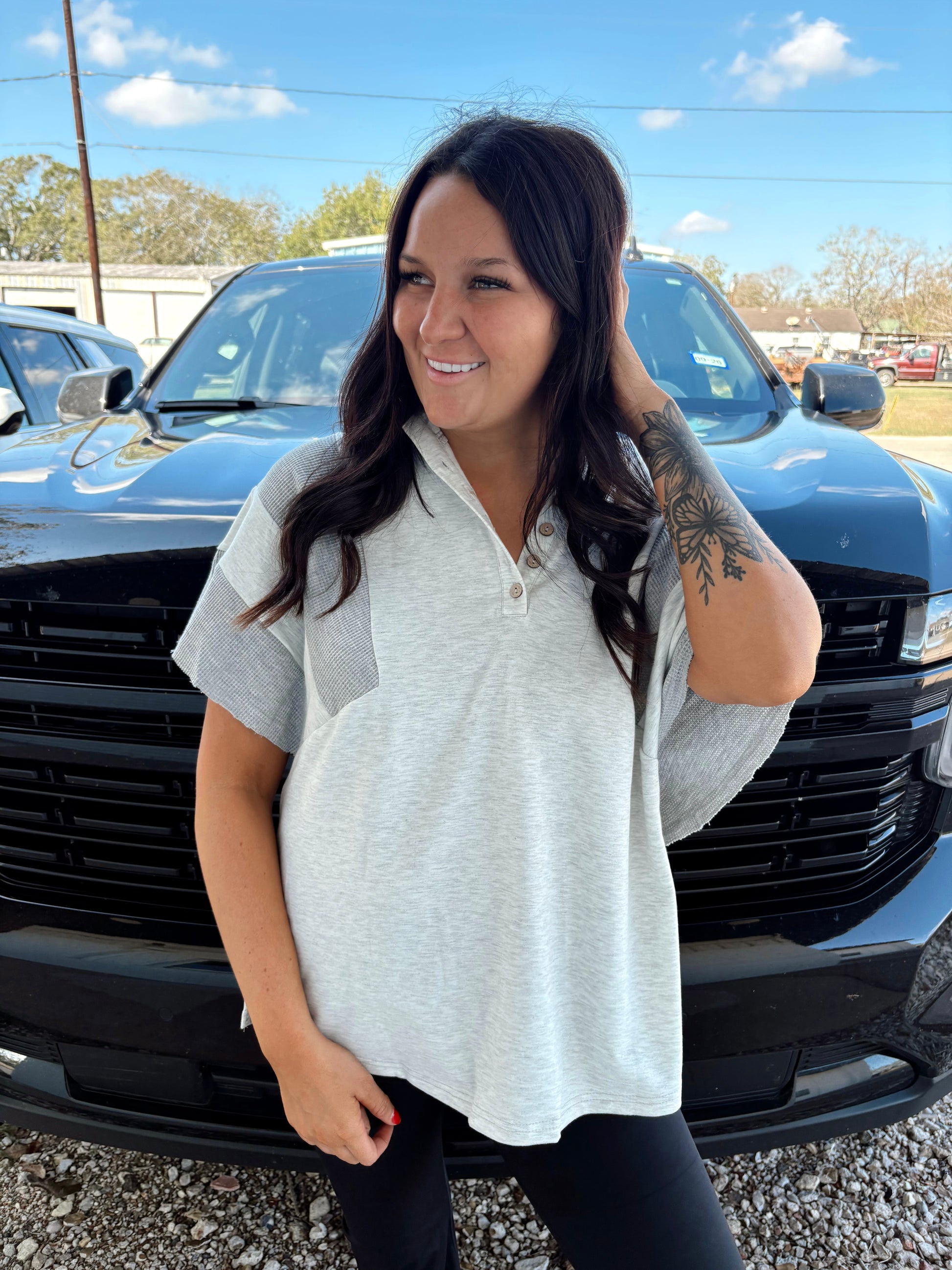 Double Take Two Toned Waffle Top