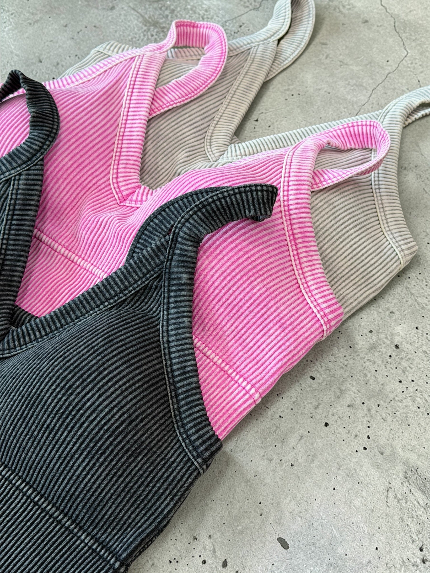 Stone Wash Sculpt V‑Neck Crop Tank Top
